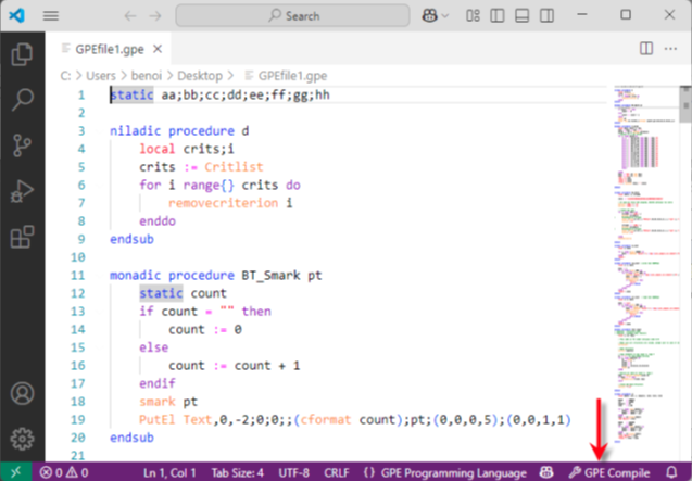 Note: You may find it convenient to write a GPE procedure and install it in the Library menu using a menu definition in the same file as your GPE procedure.